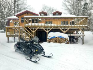 Later in the afternoon we gas up our sleds at a local village, and head back to the Algonquin Eco-Lodge. This is a remote wilderness lodge set deep in the forests of Algonquin Park. It is completely off grid and makes it’s own electricity from a waterfall. There is even a wood-fired sauna to help you relax in the evening!